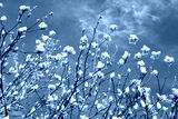 Pink magnolia buds and flowers against blue sky, soft pastel colors and gentle movement create sense of springtime beauty and tranquility