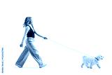 Asian woman walking a dog