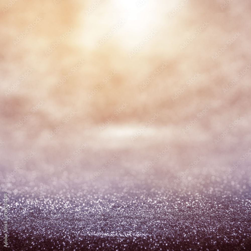 Abstract glitter lights background. light silver, gold, black and purple. defocused.
