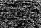 A thin, stylish garland decorates the Christmas tree, creating an atmosphere of calm and modernity
