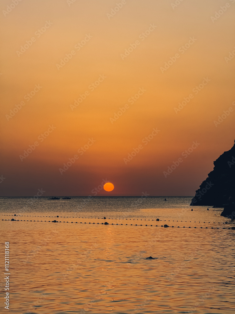 incredible sunset in Ibiza, many boats and a sunset with very vivid colors