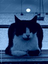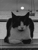 A cat is chilling during the sunset in ibiza