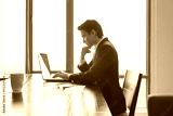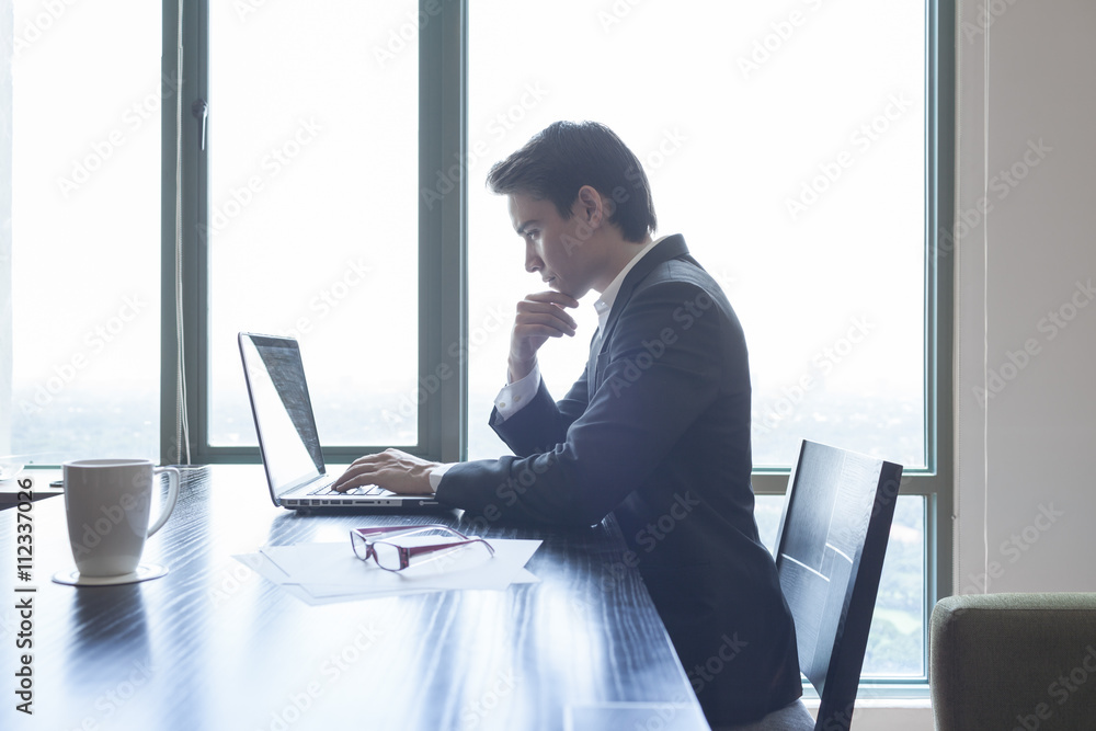 Businessman working on his laptop computer sitting in office.