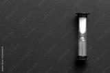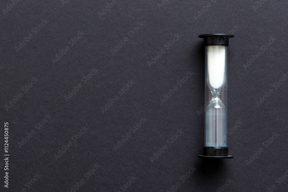 hourglass on the table, sand clock as time passing concept for business deadline, copy space