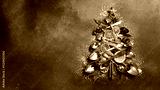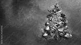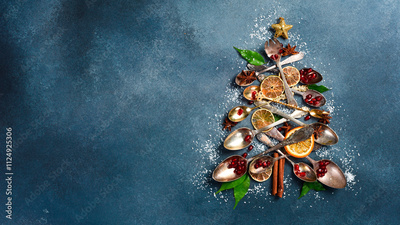 Christmas card with a Christmas tree made of cutlery. Christmas and New Year concept. Photo with free space for greeting text.