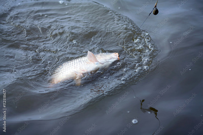 The hooked fish on a hook. Fishing on the river. The hooked rive