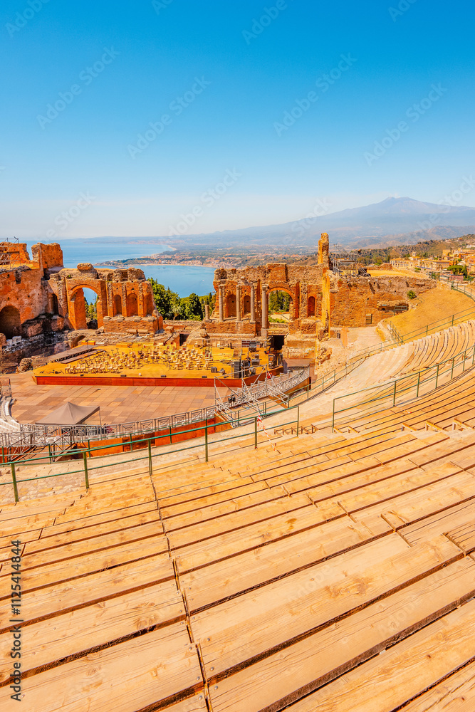 Ancient theater of Taormina with Mount Etna in the background, Sicily, Italy