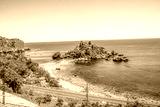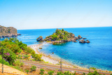 Isola Bella is small island near Taormina, Sicily, Italy. Beach in azure waters of Ionian Sea.