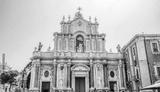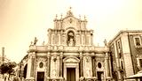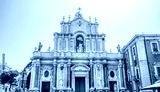 View of Cathedral Sant Agata on Piazza del Duomo with Elephant Fountain. in Catania, Sicily, Italy.