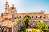 View fom Chiesa della Badia di Sant'Agata on Cathedral Sant Agata on Piazza del Duomo with Elephant Fountain. in Catania, Sicily, Italy.