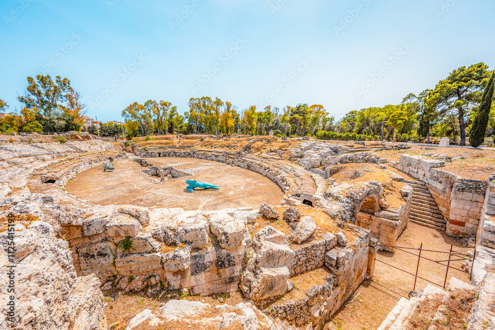 Roman amphitheater of Syracuse Sicily in the Neapolis archaeological park, Italy