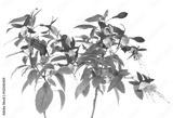 beautiful blooming branch of red and white fuchsia flower is isolated on background, `Shadow Dancer Betty`, close up