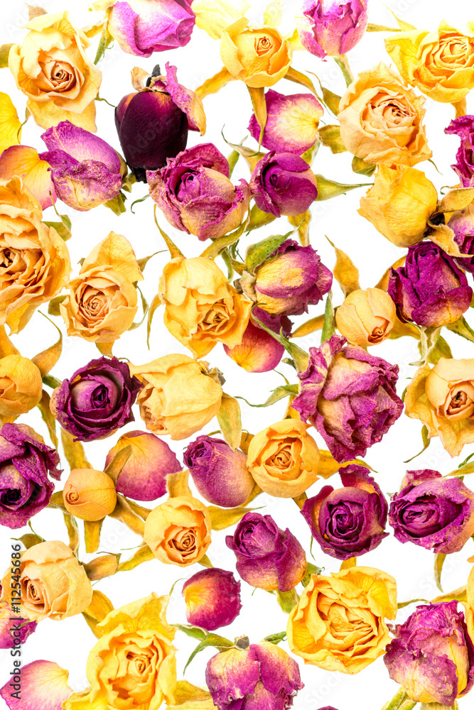 Beautiful dried yellow and pink roses like as background is isol