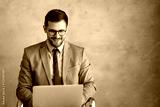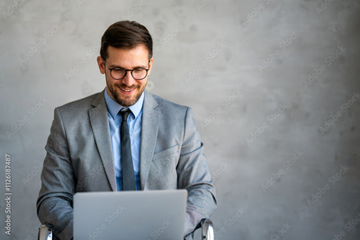 Happy professional business man company employee, young entrepreneur, smiling businessman working
