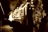 Christmas train with steam locomotive and illumination
