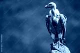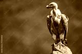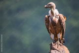 Griffon Vulture in a detailed portrait, standing on a rock overs