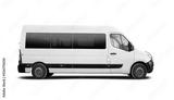 White minibus side view isolated. PNG