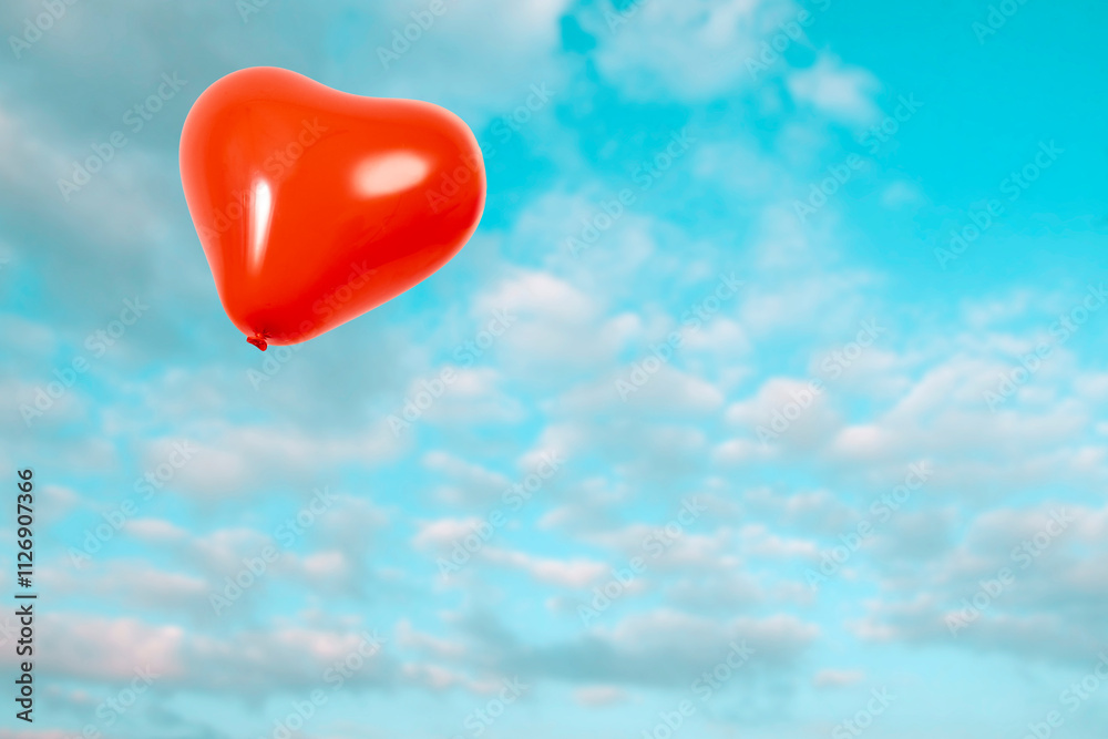 Heart shaped balloons flying into the sky. Valentine's Day Gift, symbol of love, dreams, relationships.