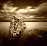 The rock in water on longe exposure. A stone in water on long exposure.