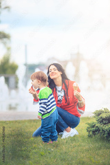 emotional mother and daughter with ice cream on a background of