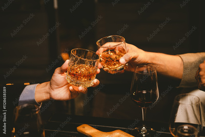 Alcohol and people hands for a night party to celebrate birthday or fun. Group of friends and drinking on the dance floor with shots.