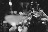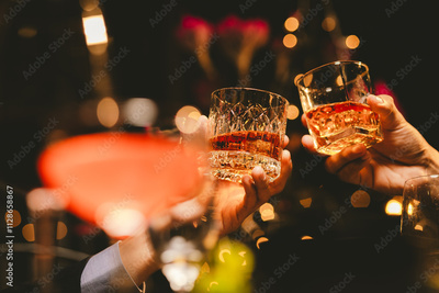 Alcohol and people hands for a night party to celebrate birthday or fun. Group of friends and drinking on the dance floor with shots.
