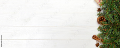 Christmas background with copy space, top view. holiday concept for you design on wooden table