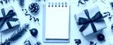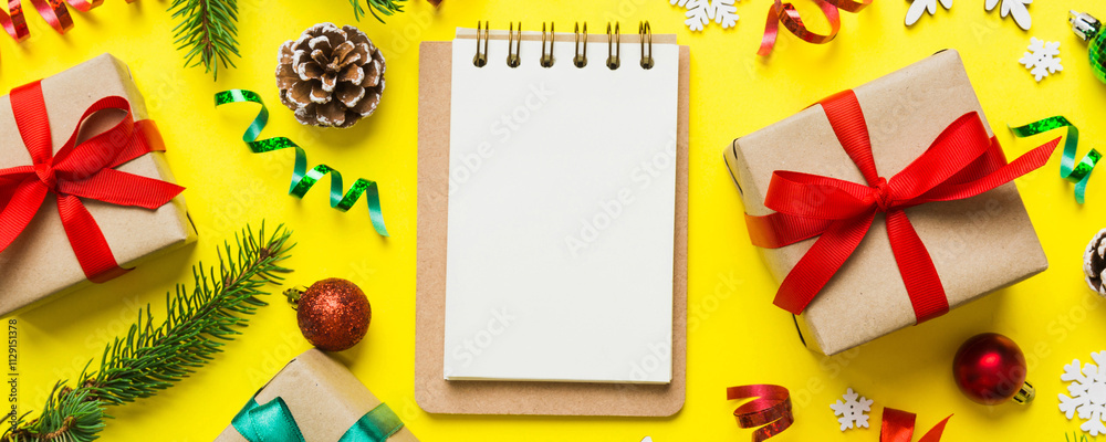 Christmas blank greeting card mock-up scene. Creative layout made of Christmas tree branches and paper card note. Flat lay. Nature New Year concept