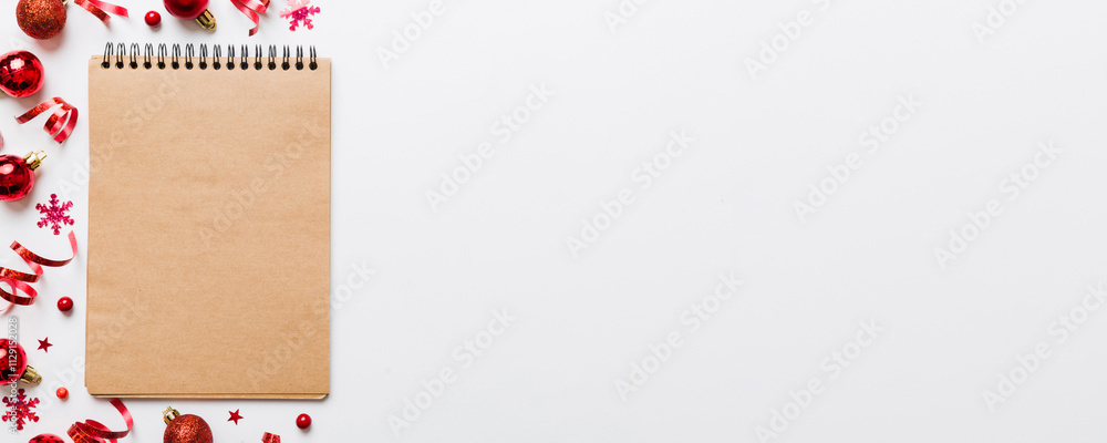 Christmas blank greeting card mock-up scene. Creative layout made of Christmas toy and paper card note. Flat lay. Nature New Year concept