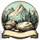 Vintage Inspired Camping Logo with Majestic Mountain Landscape