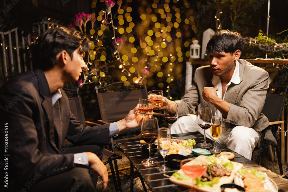 Happy two man clinking glasses of whiskey in celebration, Holiday, Festival celebration.