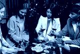 Group of friends clinking wine glasses in celebration at night, Festival celebration, Happy Asian group friends and dinner party in the night, Friendship and celebration new year concept.
