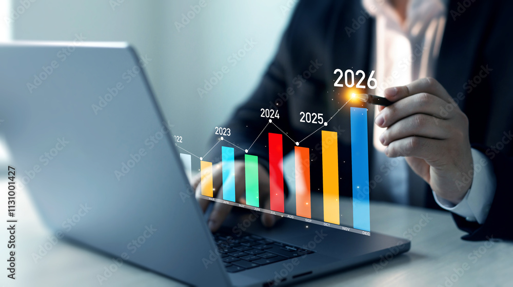 New business plans,goals,revenue and visions in business for new year 2026.New opportunity, challenge and strategy in 2026. Increase chart arrow graph corporate business future growth new year 2026.