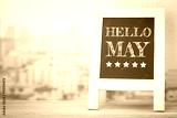 Concept HELLO MAY message on wood boards