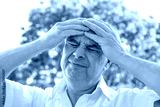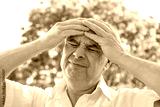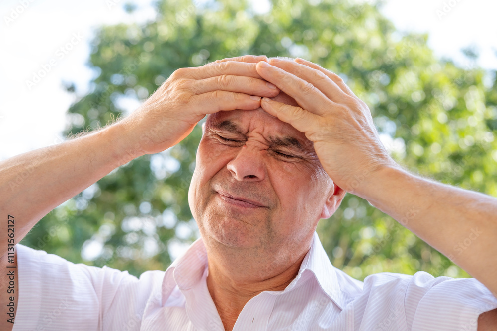 man 60 years old, senior experiences severe headache, holding head, Decreased memory and concentration, feeling nervous, closeup of mature male head, Feeling tired, exhausted