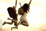 Group of backpacker friends with backpack traveling and enjoying the healthy lifestyle together