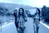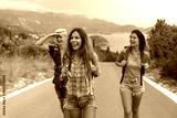 Multiracial best friends having fun outside. Happy friends on road trip have fun at summer vacation