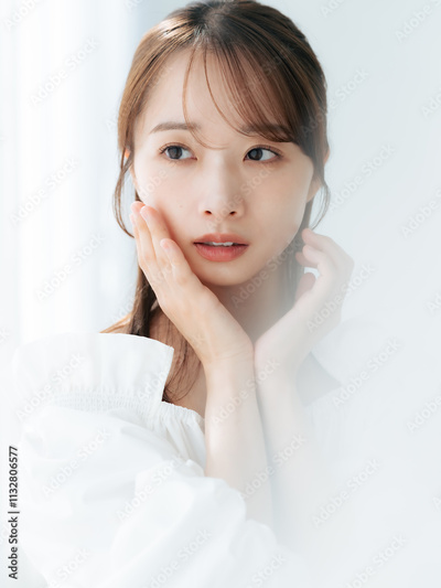 女性、脱毛、ポートレート、20代、美容、スキンケア、コスメ、ナチュラル、透明感、日本人、ビューティー、ファッション、ホワイト、おしゃれ、カジュアル、明るい、爽やか、エステ、サロン、きれいめ、キレイめ、シンプル、清潔感、上品、清楚、美肌、美白、美顔、アンチエイジング、セルフケア、ニキビケア、UVケア、化粧品、メイク、ライフスタイル、オフショルダー、カメラ目線、若い、素肌、コピースペース、カーテン、美