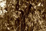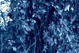 Virginia creeper plant with many red and yellow leaves in autumn. Red climbingvine Parthenocissus quinquefolia