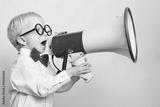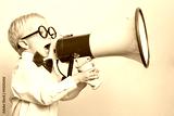 Kind ruft laut in ein Megafon
