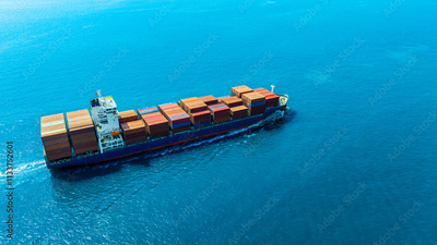 Aerial view of the freight shipping transport system cargo ship container. international transportation Export-import business, logistics, transportation industry concepts