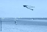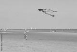 Cute toddler girl playing on the beach flying colorful kite. Child enjoying summer family vacation at the sea.