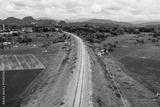 View of railway tracks in rural Indonesia in the afternoon