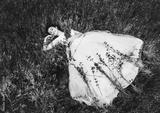 Beautiful young bride in field, happy woman enjoying flowers.beautiful girl lying in the grass and flowers