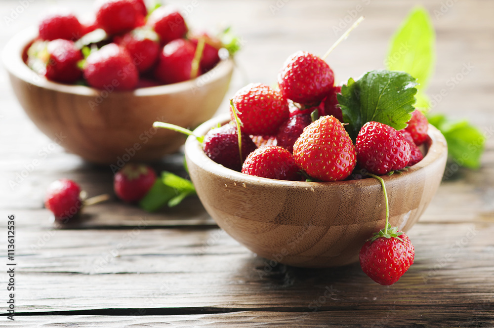 Sweet fresh strawberry on the wooden table