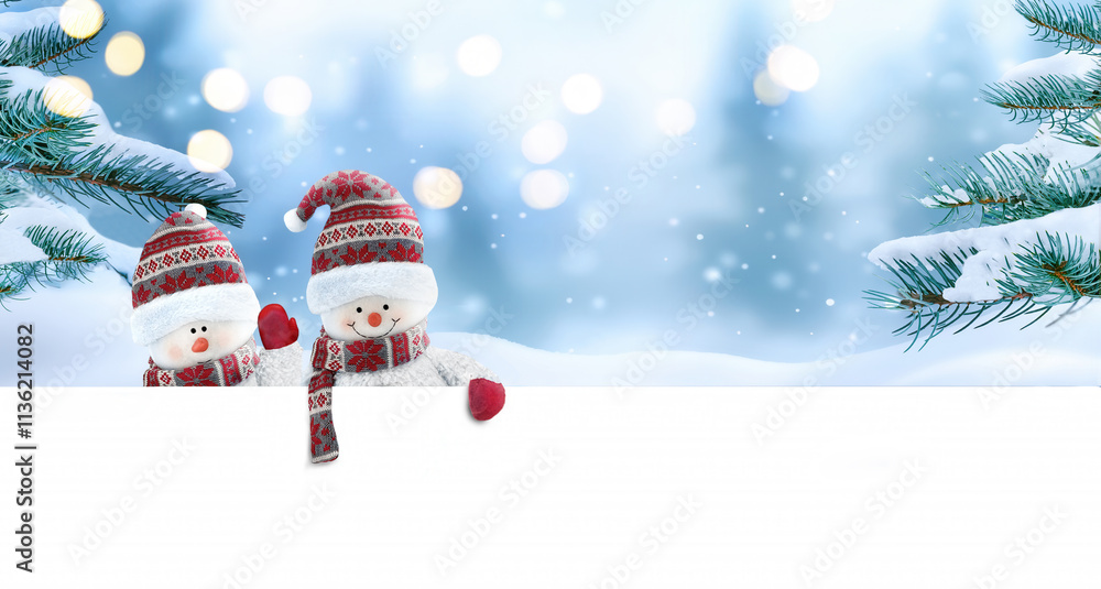 Two Cute Snowmen with copy space for greeting, card, web banner banner