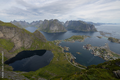 Reine from Reinebringen,view on stunning mountains of Lofoten islands, Norway