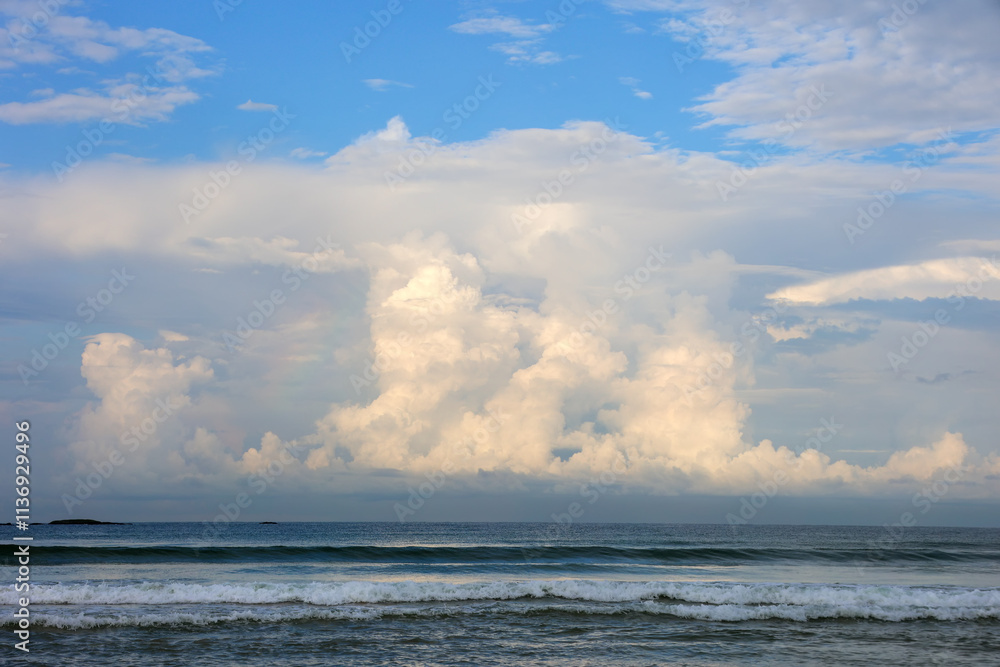 Seascape. Background of the sky with clouds at sunrise on the sea