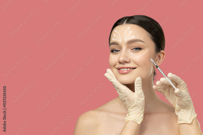 Botox. Skin Care. A girl gets a botox injection, on a light background.