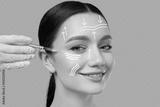 Botox. Skin Care. A girl gets a botox injection, on a light background.